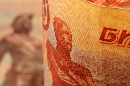 Closeup on banknotes of Russian rubles