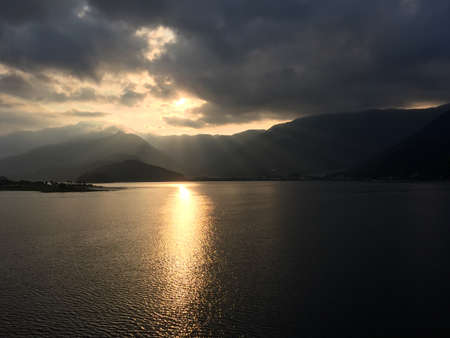 Water, sky and mountains. Landscape during sunset. Trip to Maggiore lake.