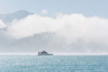 Boat over water at famous attraction, the Sun Moon Lake at Taiwan.
