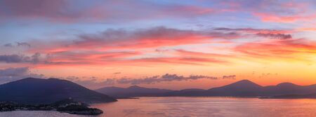 Beautiful sea view and mountains in the Mediterranean at sunset, summer vacation travel and holiday destination