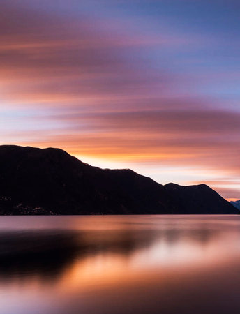 Sunset on lake Como, Italy. Long exposure shot.