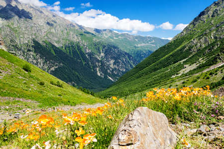 Beautiful valley and peaks in Caucasus mountains, the Main Caucasian ridge. North Caucasus