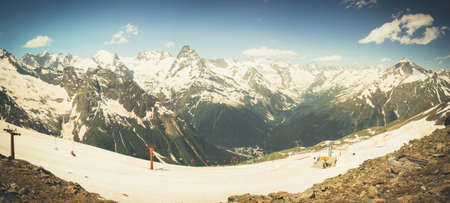 Mountains panorama with ski slopes. Caucasus.