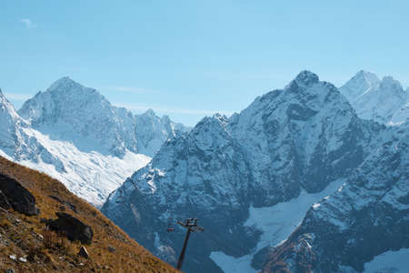 Caucasus mountains - The highest mountains in Russia. Snow mountains with the blue sky background