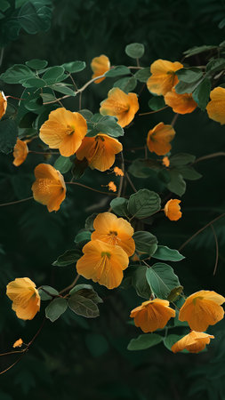 Golden Leaves (Bauhinia aureifolia) and flowers in the garden