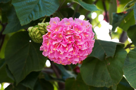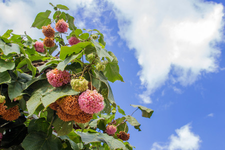 Tree Dombeya Wallichi native of Madagascar blooms beautiful pink flowers