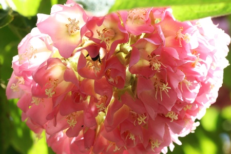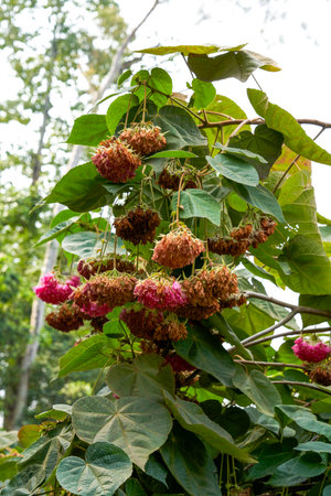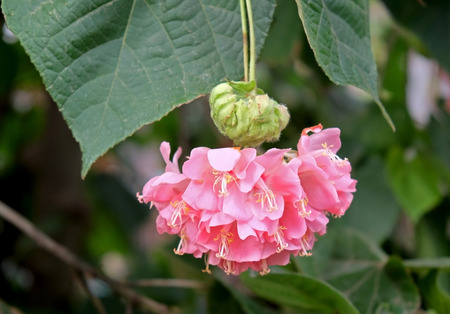 Dombeya wallichii or pink ball or pink ball tree. This hanging flower clusters are pink, showy and fragrant