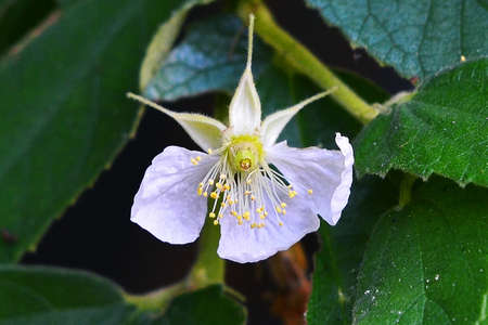 A close up of a beautiful lavender bulbous begonia flowers with raindrops on background, stock photo