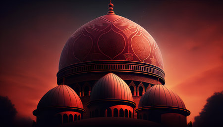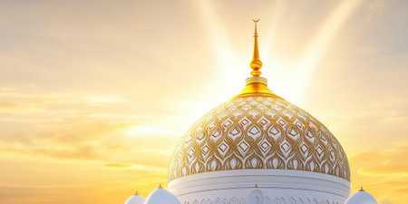 Dome of the mosque at sunset. Ramadan Kareem background.