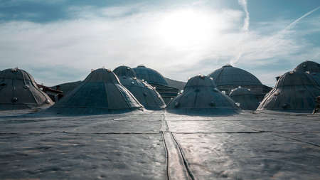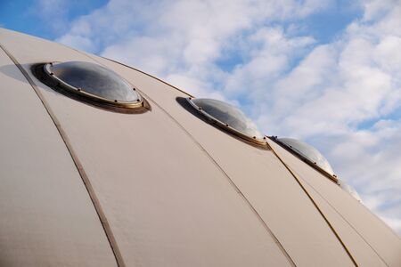 Semi-circular buildings with round Windows and transparent passages. Planet exhibition complex or education park is exceptional place.
