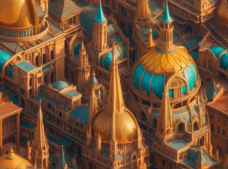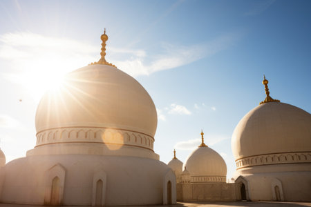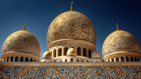 Capture the essence of grandeur with these stunning golden domes featuring intricate patterns set against a clear blue sky, showcasing architectural beauty.