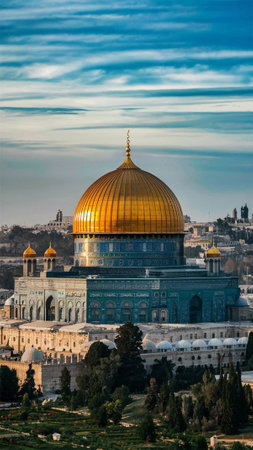 Iconic Golden Dome of the Rock, Jerusalem A Symbol of Faith Against a Vibrant Blue Sky