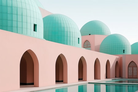 Arabic style. Architectural design elements for muslim holidays. Realistic minimal style. Generative AI