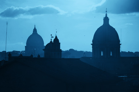 Rooftop view of Rome historical architecture and city skyline. Italy.