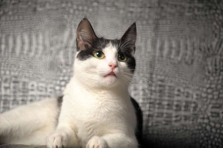 Portrait of a cat with a funny expression on his face.