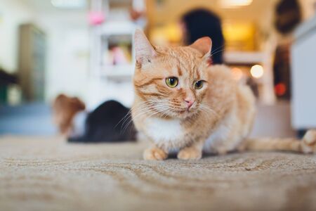 Portrait of a little cat inside a house