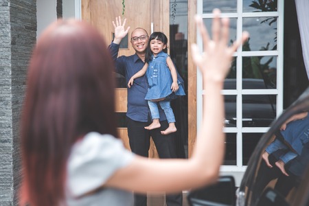 Asian family spending time together at home. Son practice using camera taking photo at his father. Mother giving a cup of water to father.