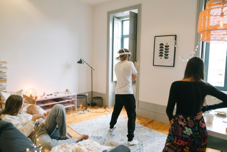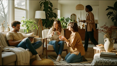 A Casual Group Gathering in a Modern Living Space That Exudes Comfort and Joyful Vibes
