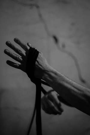 hands with a rope on a black background