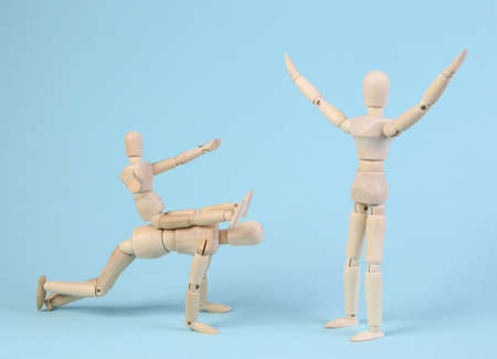 wooden human figurine depicts action and emotions.