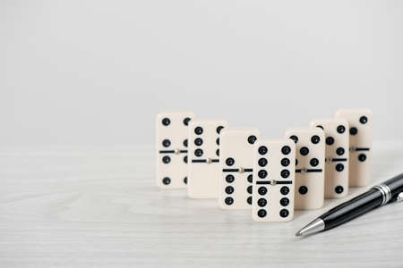 Arrangement of Domino tiles on the table. Concept of Domino effect in business.