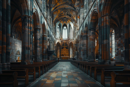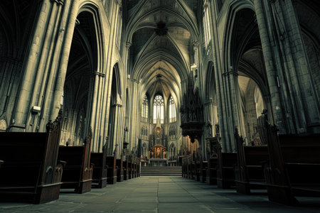 The majestic and serene interior of a gothic cathedral with grandiose architecture and medieval historical significance