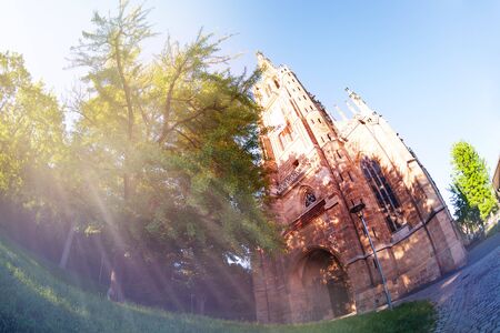 FREIBURG / BADEN-WüRTTEMBERG, GERMANY - Dec 09, 2018: A low angle shot of the Freiburger Munster in Freiburg, Germany under a cloudy sky