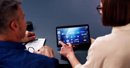 Smart home connection Smart home tech device IoT House automation interiors, living room, kitchen, bedroom and bathroom