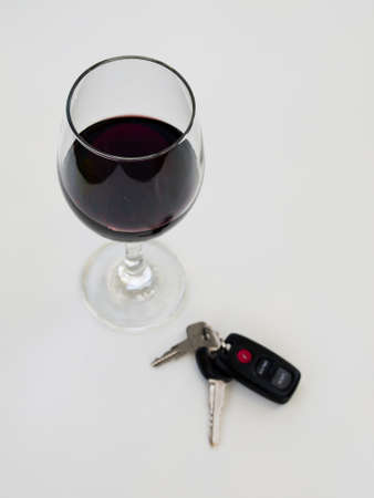 Drinking and driving Wine glass and car keys on white background