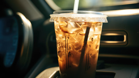 commute iced coffee in car