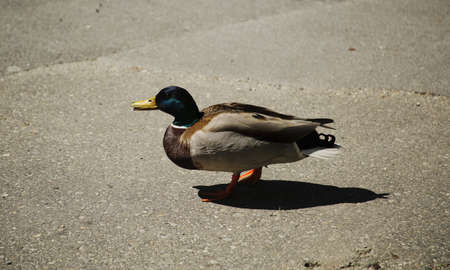 adult duck in paddock. Domestic duck on walk