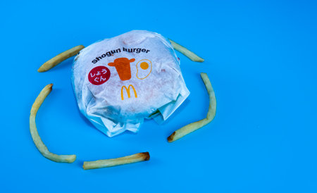 Rawang, Selangor,Malaysia, 13th June 2021 - Selective focus of McDonald's newest burger known as Shogun Burgers. McDonald's Corporation is the largest fast food restaurant in the world.