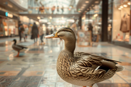 a duck gracefully floats in rainwater, captured in a stunning stock photo. rendered in unreal engine, this image showcases characterful animal portraits by helene knoop. the hyper-realistic details, achieved through cinema4d, bring the duck to life. shot with a sony alpha a1, the duck's light beige and orange hues add to its charm. ai generated