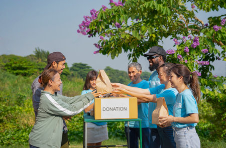 Volunteer volunteers work together as a team on a fundraiser