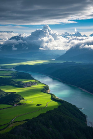 Beautiful panoramic view of the mountains and the river.