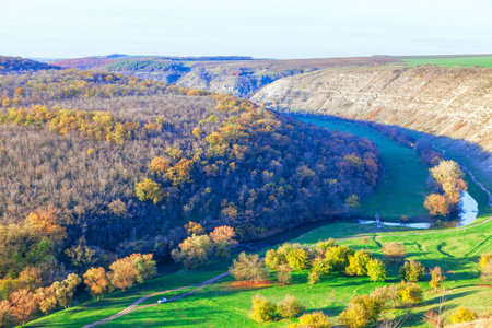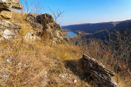 Beautiful Slovakian panoramic landscape with a rock and river down in the valley. Kosice area