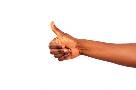 Thumbs up sign - Male hand showing thumbs up sign isolated on white background. Hand symbol sign language.