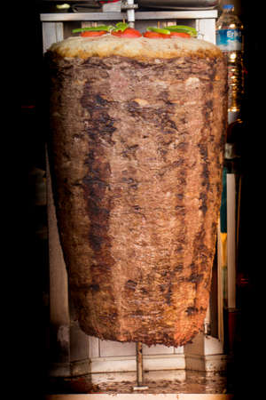 Kebab meat on rotary grill - Turkish doner beef kebab stand in Istanbul, Turkey