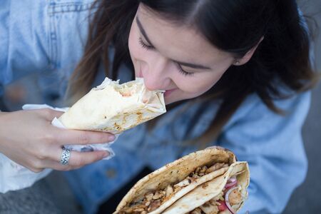 Shawarma roll. Homemade Meat Gyro. Fast food. Takeaway & Food Delivery. Take Out meal. Kebap and Sandwich
