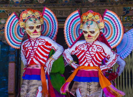 LEH, INDIA - SEP 21 , 2017 : Buddhist monks performing Cham dance during the Ladakh Festival in Leh India on September 20, 2017