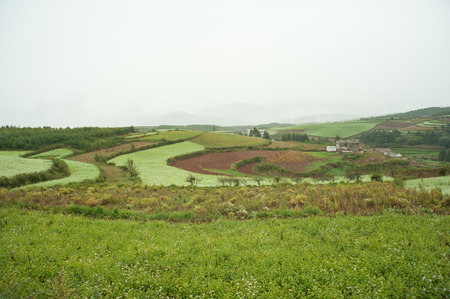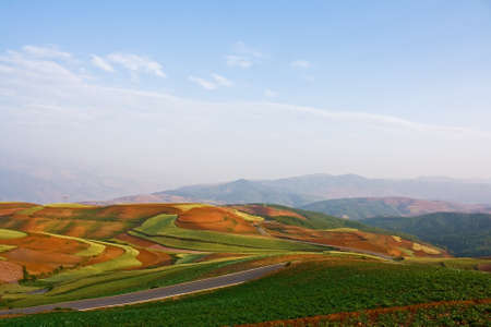 China rural landscape on colorful red land in Yunnan Province, southwest of China