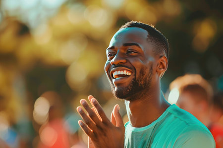 Cheerful man clapping hands with a bright smile.