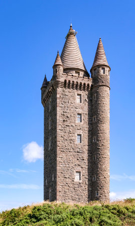 Scrabo Tower near Newtownards and Strangford Lough in County Down in Northern Ireland built in 1857 as a memorial to Sir Charles Stewart, Marquess of Londonderry