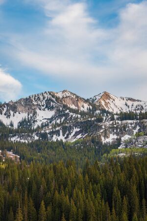 View of snowy mountains in the Wasatch Range of the Rocky Mountains, near Park City, Utah
