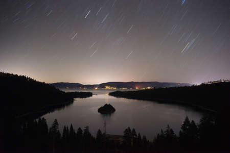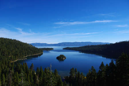 Emerald Bay view with Fannette Island in South Lake Tahoe California in the Sierra Nevada mountains. Golden hour