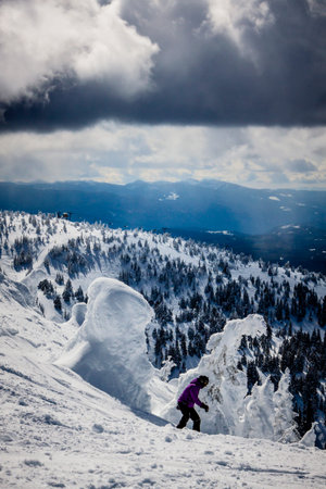 Snow-covered slopes of Kirkwood ski resort, USA, California