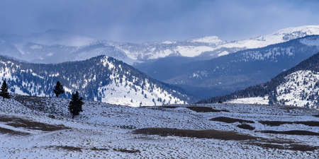 the Scenic Beauty of Wyoming. Yellowstone National Park Frozen Landscape Panoramic