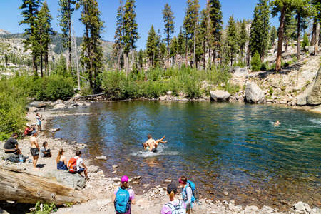 California, AUG 7 2016 - People playing in the beautiful Lower Fall