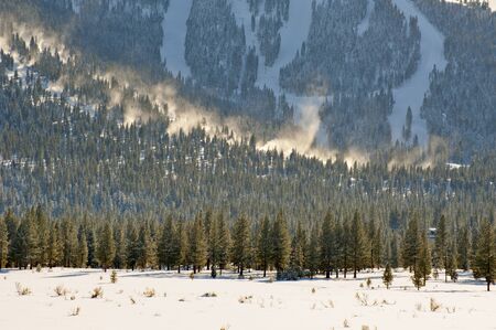 View at the ski slopes piste in the mountains of Angel Fire, New Mexico.
