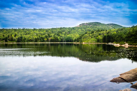 Jordan Pond with view of the Bubbles in background at Acadia National Park in Mount Desert Island, Maine.